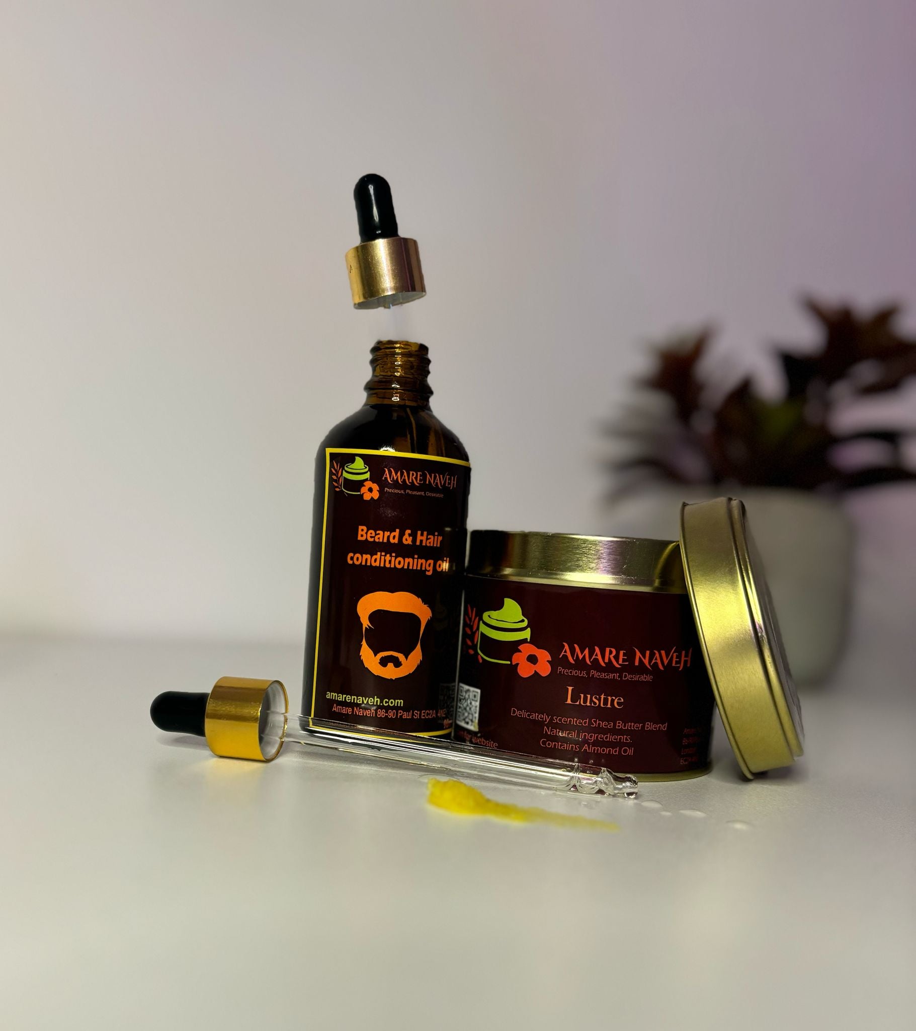 Beard & Hair Conditioning Oil – A nutrient-rich blend of Avocado, Grapeseed, and Sweet Almond oils, infused with essential oils to condition, soften, and strengthen hair and beard. Perfect for styling, taming frizz, and promoting healthy growth.